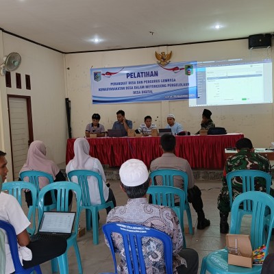 Pelatihan Perangkat Desa dalam menyongsong Pengelolaan Desa di gitalisasi yg bertempat diaula Kantor Desa Bengkaung.